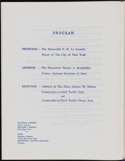 Dinner given by the City of New York in honor of Admiral of the Fleet Chester W. Nimitz