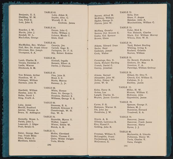 Dinner in honor of Mr. Cass Gilbert given by Mr. F. W. Woolworth. Seating Arrangements