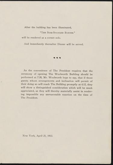 Dinner in honor of Mr. Cass Gilbert given by Mr. F. W. Woolworth