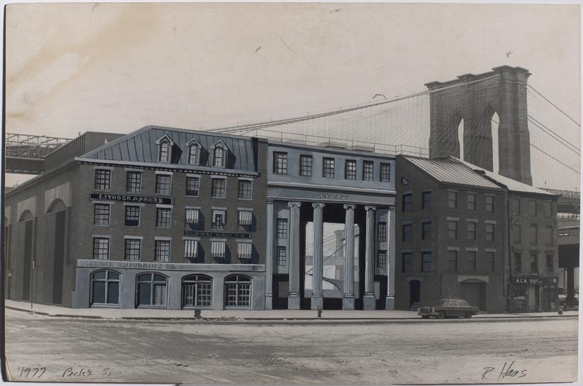 [Trompe l'oeil concealing a Con Ed substation at 237-257 Front Street, and the Jasper Ward house, 45 Peck Slip.]