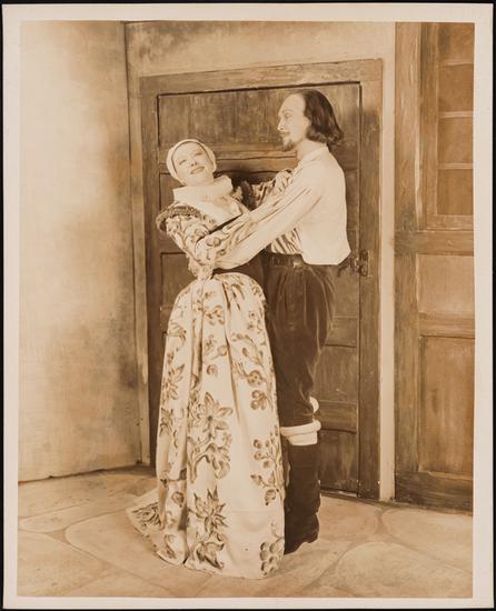 [Barry Thomson as Will Shakespeare and Ruth Chatterton as Anne Hathaway Shakespeare in "Second Best Bed".]