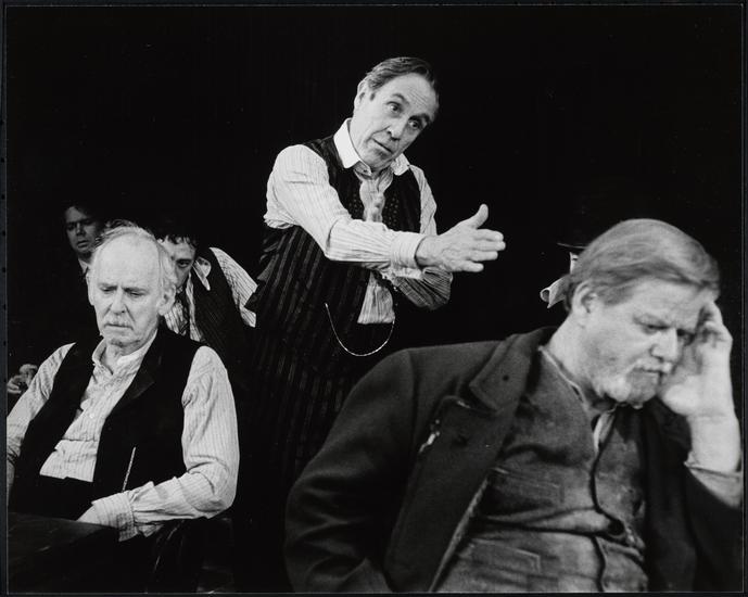 [Paul McCrane as Don Parritt, Jason Robards as Theodore Hickman and Donald Moffat as Larry Slade in "The Iceman Cometh".]