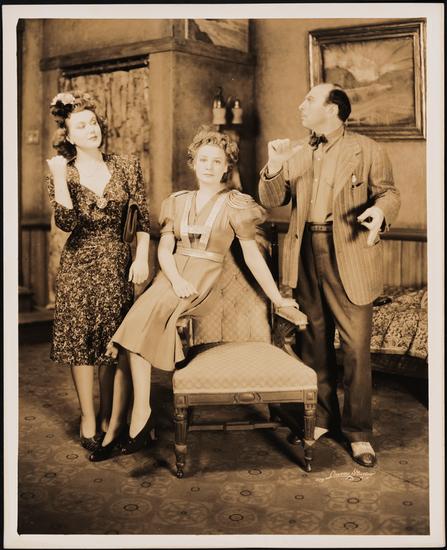 [Unidentified actress in the role of Violet Shelton, Shirley Booth as Ruth Sherwood and Morris Carnovsky as Mr. Appolpolous in "My Sister Eileen".]