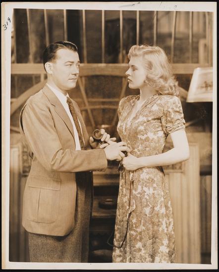 [Peggy Knudsen as Eileen Sherwood and Bruce MacFarlane as Chic Clark in "My Sister Eileen".]