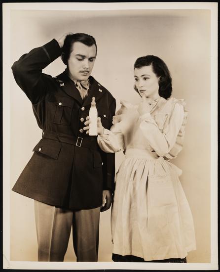 [Katharine Bard as Kitty Mitchell and Francis De Sales as Eugene Mitchell in "Three's a Family".]