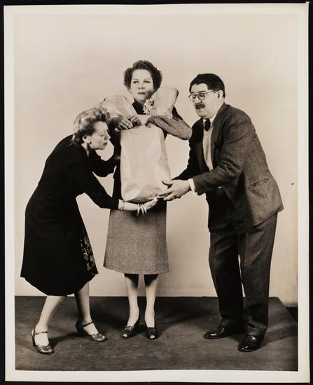 [Doro Merande as Adelaide, Robert Burton as Sam Whitaker and Ethel Owen as Irma Dairymaple in "Three's a Family".]