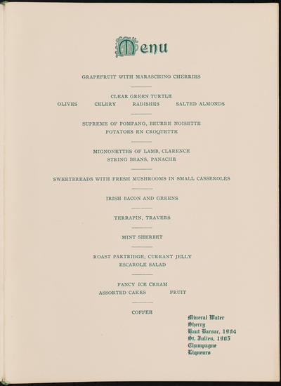 Friendly Sons of St. Patrick [Champagne list for 130th anniversary dinner.]