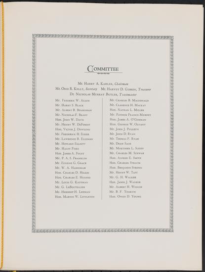 Dinner given to the Honorable Morgan J. O'Brien. Seating List