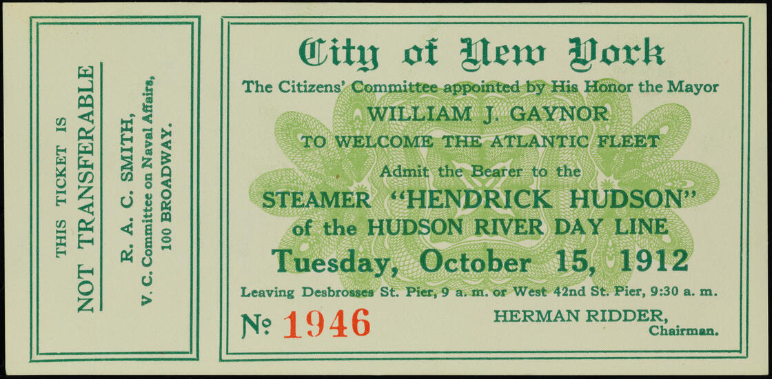 Admit the Bearer to the Steamer "Hendrick Hudson"of the Hudson River Day Line