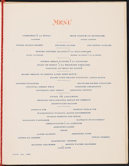 [Fourth of July menu at the Colonial Hotel.]