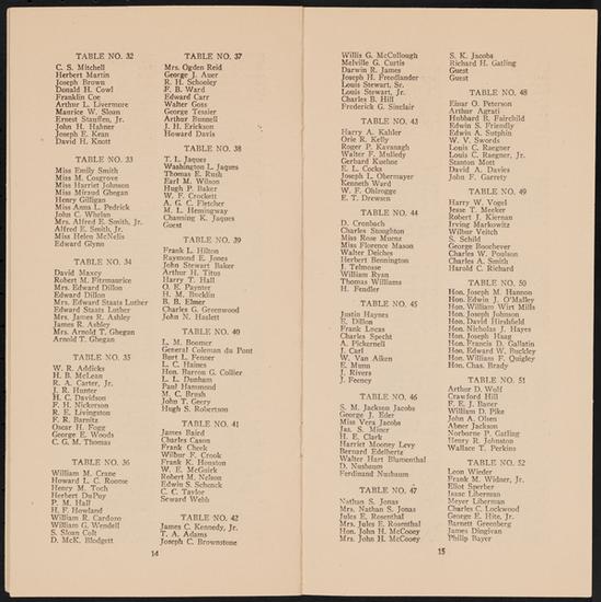 The Fifth Avenue Association, Inc. Annual Dinner Table Numbers