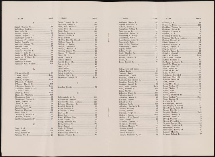 Table Assignments, Annual Bar Dinner of the New York County Lawyers' Association