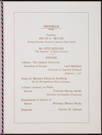 Seating List. Dinner in Honor of Pioneers of American Industry