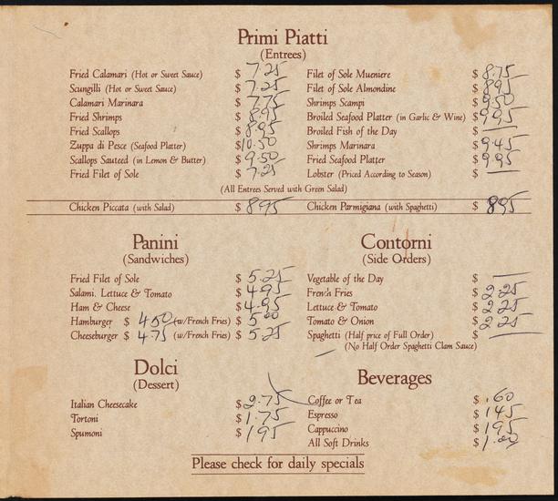 Caroline's at the Seaport Grill Restaurant Menu. Dinner