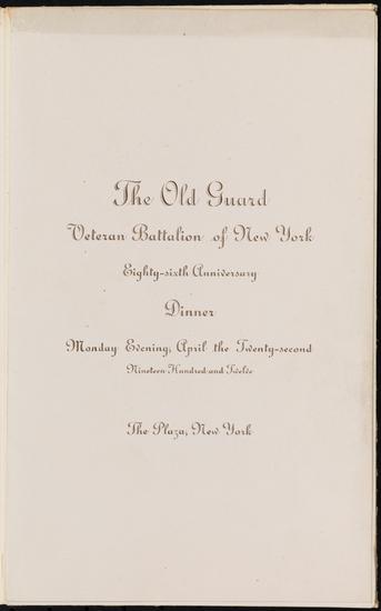 The Old Guard Veteran Battalion of New York Eighty-sixth Anniversary Dinner