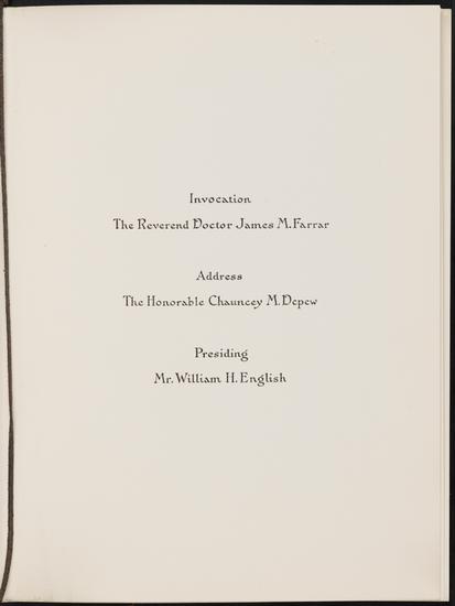 Twenty-Sixth Annual Banquet of the Montauk Club of Brooklyn and Celebration of the Eighty-Third Birthday of the Honorable Chauncey M. Depew