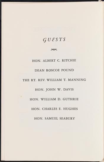 Table Assignments, Annual Bar Dinner of the New York County Lawyers' Association