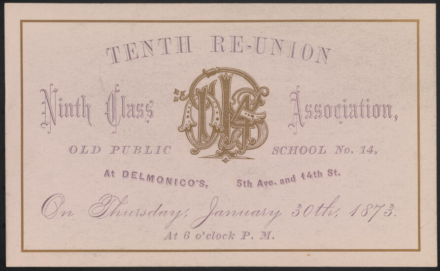 Re-Union of the Associate Alumni of the Male Dept. of Grammar School No. 14, New York City