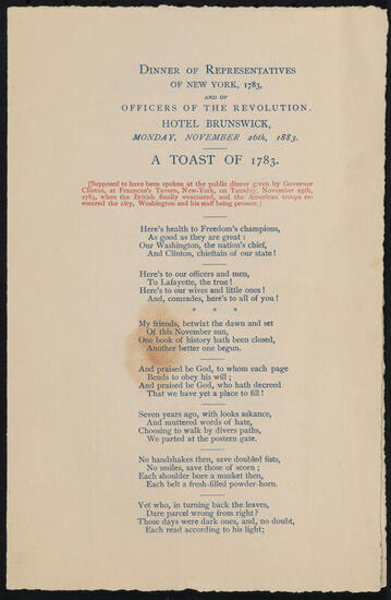 Dinner of Representatives of New York in 1783, and of Revolutionary Families Residing in the City