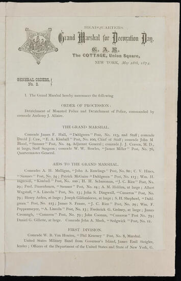 Order of Exercises for Decorating Soldiers' Graves at Cypress Hill Cemetery