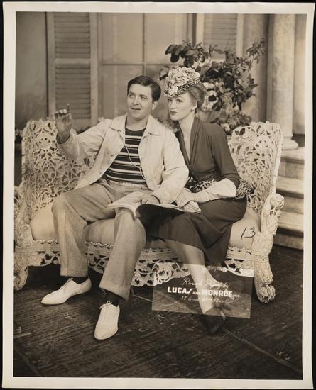[Grace McDonald as May Graham and Richard Quine as Sonny Spofford in "Very Warm for May".]