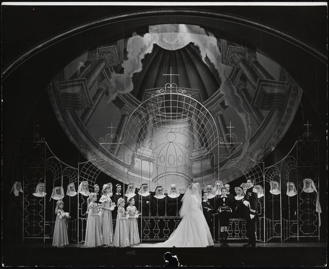 [Patricia Neway as The Mother Abbess, Mary Martin as Maria Rainer and Theodore Bikel as Captain Georg von Trapp in "The Sound of Music".]
