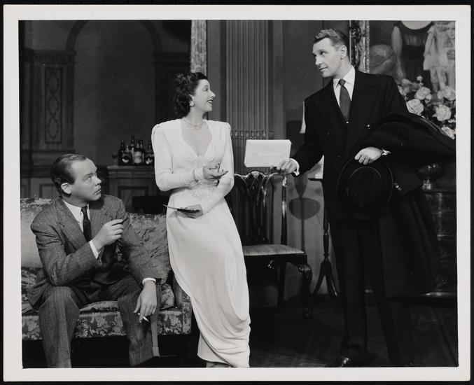 [Ralph Bellamy as Grant Matthews, Myron McCormick as Spike McManus and Kay Francis as Mary Matthews in "State of the Union".]