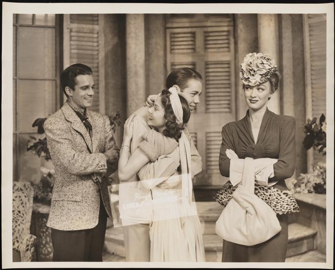 Frances Mercer as Liz Spofford, Jack Whiting as Johnny Graham and Eve Arden as Winnie Spofford in "Very Warm for May".]