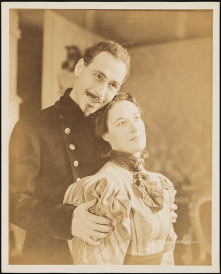 [Paul Leyssac as Kulygin and Eva Le Gallienne as Masha in "The Three Sisters".]