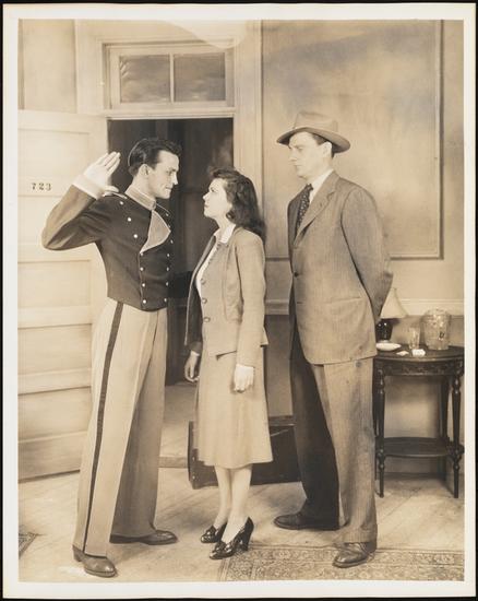 [Eddie Dowling as Peter Wade, Dehl Berti as Eddie Talmo and Terry Holmes as Ann Stevens in "Manhattan Nocturne".]