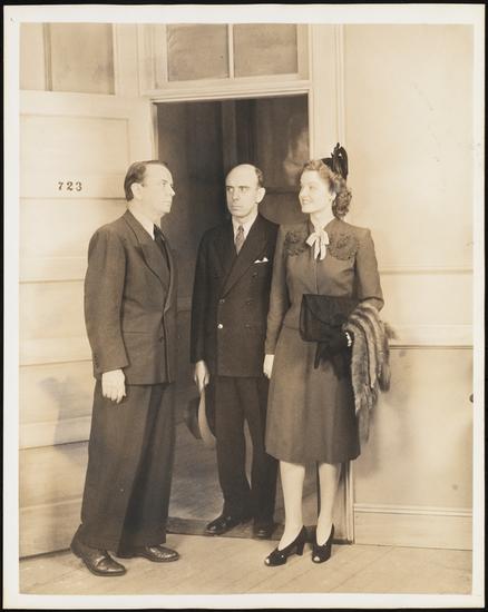 [Howard Smith as Judge Petrie, Terry Holmes as Ann Stevens and Eddie Dowling as Peter Wade in "Manhattan Nocturne".]