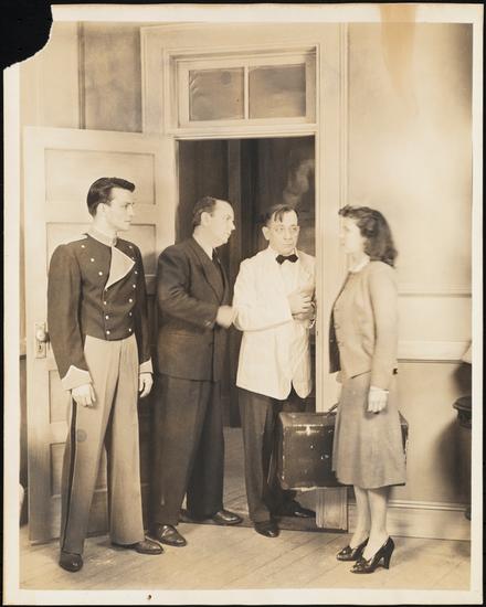 [Howard Smith as Judge Petrie, Eddie Dowling as Peter Wade and Terry Holmes as Ann Stevens in "Manhattan Nocturne".]
