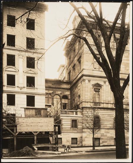 1 East 91st Street. Interior courtyard abutting 1107 Fifth Avenue, apartment building under construction