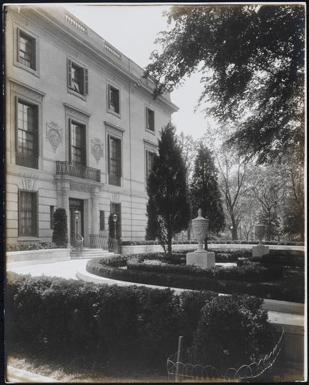 [Garden enclosed by spiral driveway, Ford building, New York World's Fair.]
