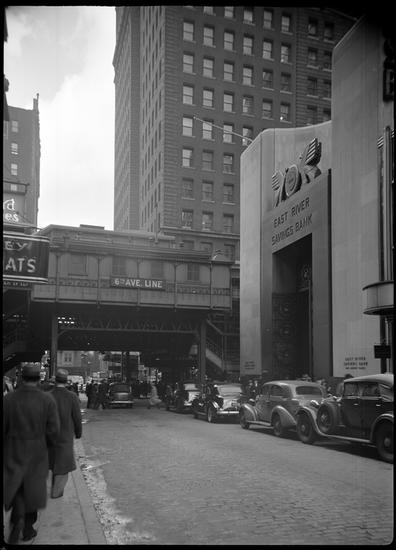 [East River Savings Bank and Sixth Avenue El train station.]
