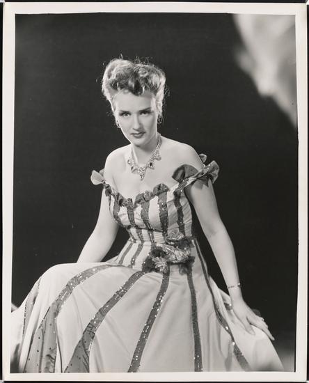 [Unidentified showgirl during a photo shoot for "As the Girls Go".]
