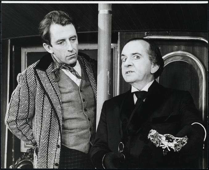 [Peter Sallis as Dr. Watson and Fritz Weaver as Sherlock Holmes in "Baker Street".]