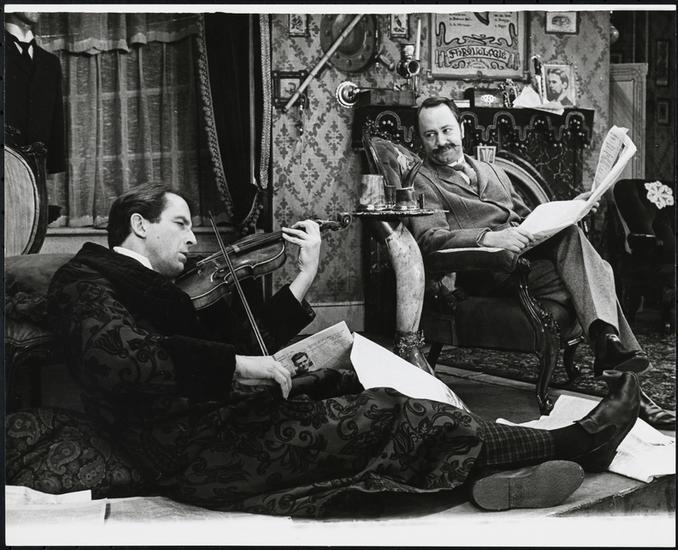 [Peter Sallis as Dr. Watson and Fritz Weaver as Sherlock Holmes in "Baker Street".]