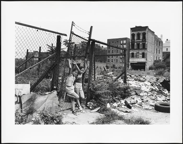Among the last residents, [an] African-American boy standing in rubble, his "neighborhood," with abandoned buildings in the background.