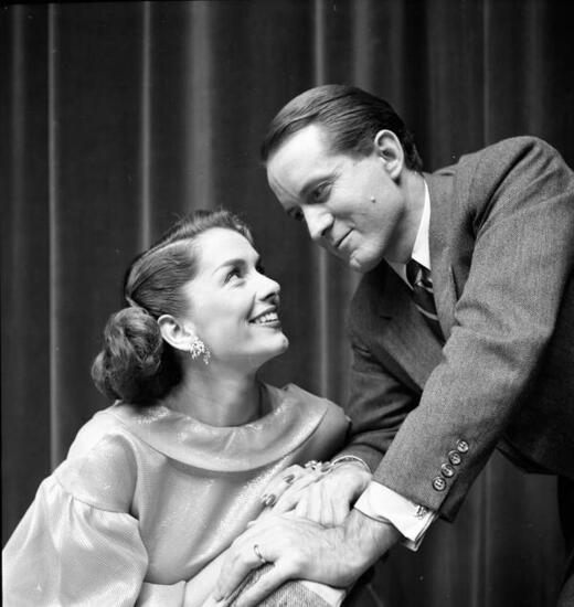 [Holland Taylor and Keith Charles with Tex McCrary on the set of "Breakfast with Les and Bess".]