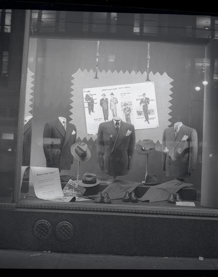 Abraham Strauss [Woman looking at shirts in a window display.]