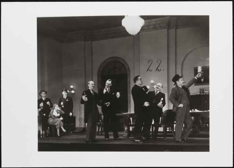 ["Both Your Houses" theater still.]