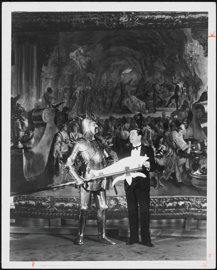 [Constance Carpenter as The Demoiselle Alisande la Carteloise and William Gaxton as The Yankee in "A Connecticut Yankee".]