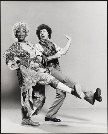 [Mike Burstyn as P. T. Barnum and Lillian White as Joice Heth in "Barnum".]