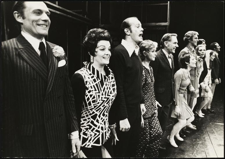 [George Wallace as David, Larry Kert as Robert, and Jane A. Johnston as Jenny in "Company".]