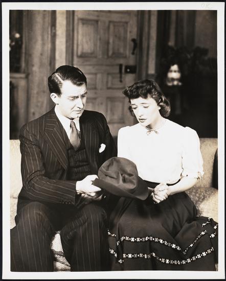 [Donald Cook as David Naughton and Phyllis Thaxter as Claudia Naughton in "Claudia".]