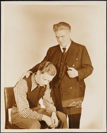 [Whitford Kane as Brother Seraphim and Tony Miller as Kurt Rheinhold in "Career Angel".]