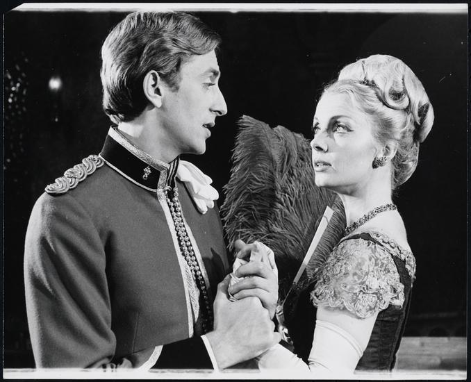 [Paul Jones as 2nd Lt. Arthur Drake and Michael Bradshaw as Major Lionel Roach in "Conduct Unbecoming".]
