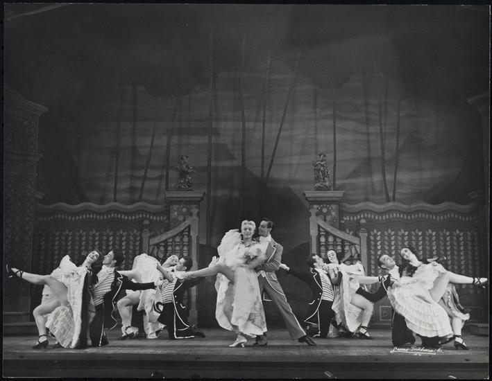 [Frances McCann as Nadina Popoff and Keith Andes as Lieutenant Bumerli in "The Chocolate Soldier".]