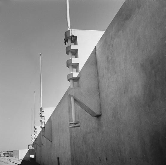 [Detail of Poland pavilion tower, New York World's Fair.]